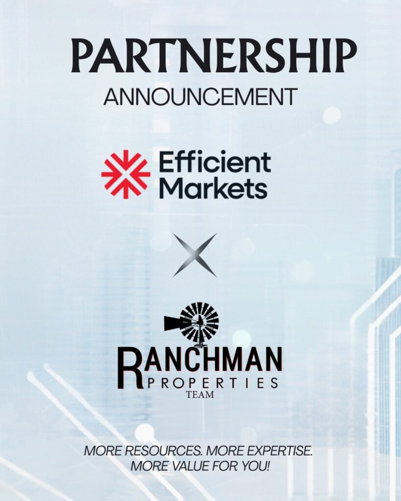 “Ranchman Properties is built on specialization, relationships, and results,” said Ben Clark. “Partnering with Efficient Markets allows us to expand our reach and deliver a best-in-class, technology-enabled sales experience for our clients,” added Jason Trosper.